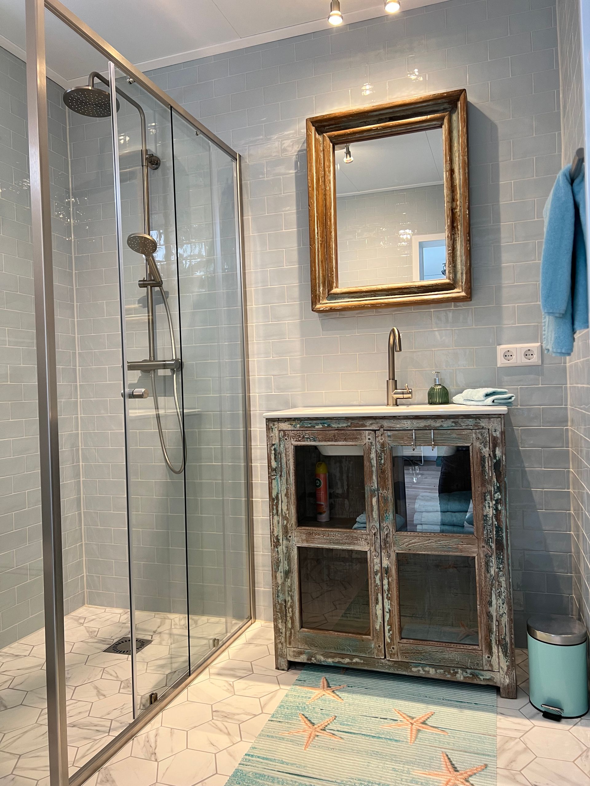 This completely renovated apartment was finished in August 2023 and is located at the Wilhelminastraat 114c. Only a five minute walk to the beautiful beach, and the cozy centre of town with nice shops and all kinds of restaurants! It is a spacious apartment of approx. 70m2, suitable for 2 people. A partly separated bedroom has a large 180x200cm bed, and a luxurious ensuite bathroom including a rain shower, a unique washbasin, toilet, towel radiator & floor heating. The large living room has a comfortable sofa, a Smart TV and free Wifi. There are also double patio doors that open to a private terrace! The open kitchen, is fully equipped with a dining area, combi oven microwave, fridge-freezer, induction stove, dishwasher and floor heating.